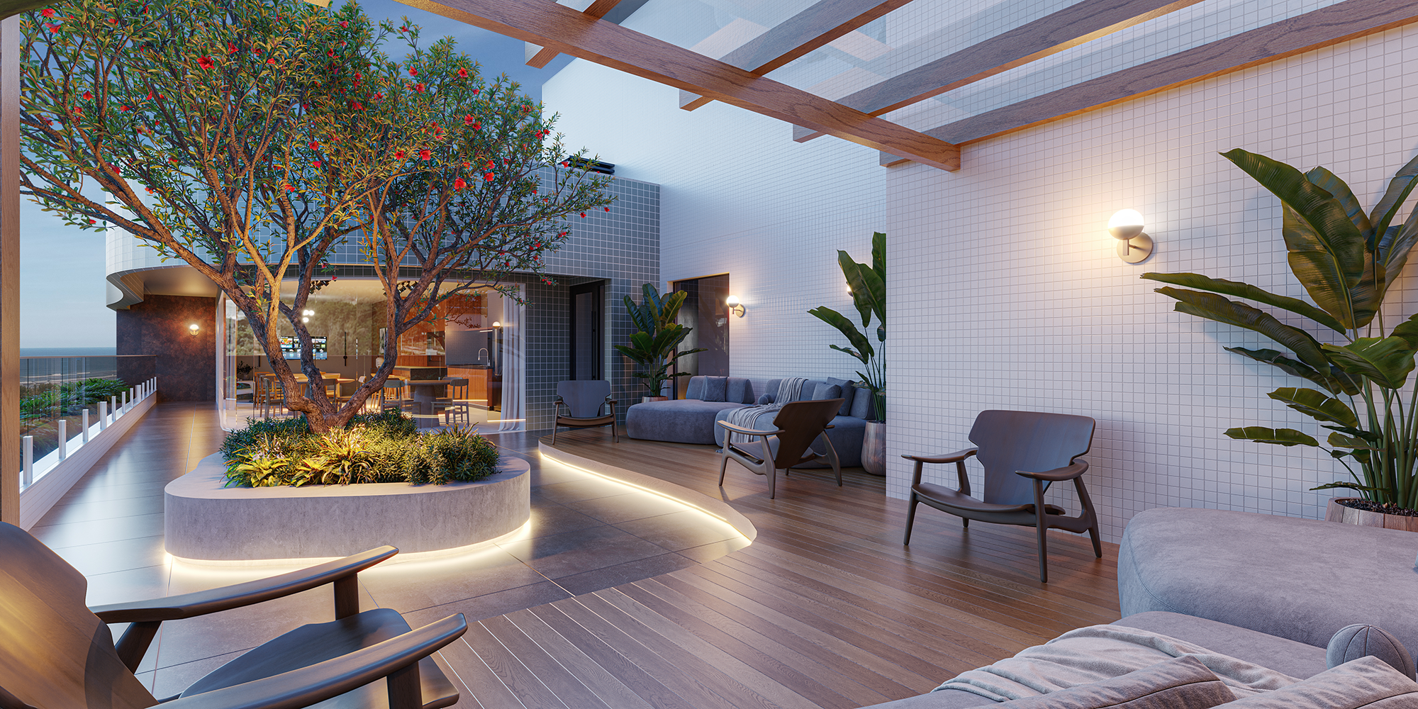 Mais do que um ambiente, o rooftop é uma experiência sensorial completa. O som das ondas, a brisa leve que percorre o espaço e a vista panorâmica unem-se para criar momentos inesquecíveis.