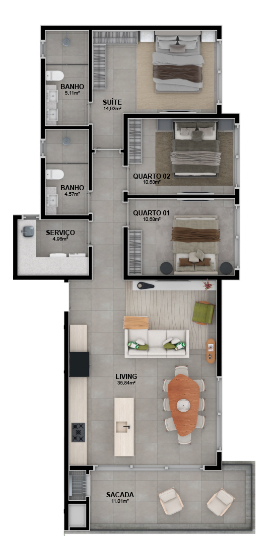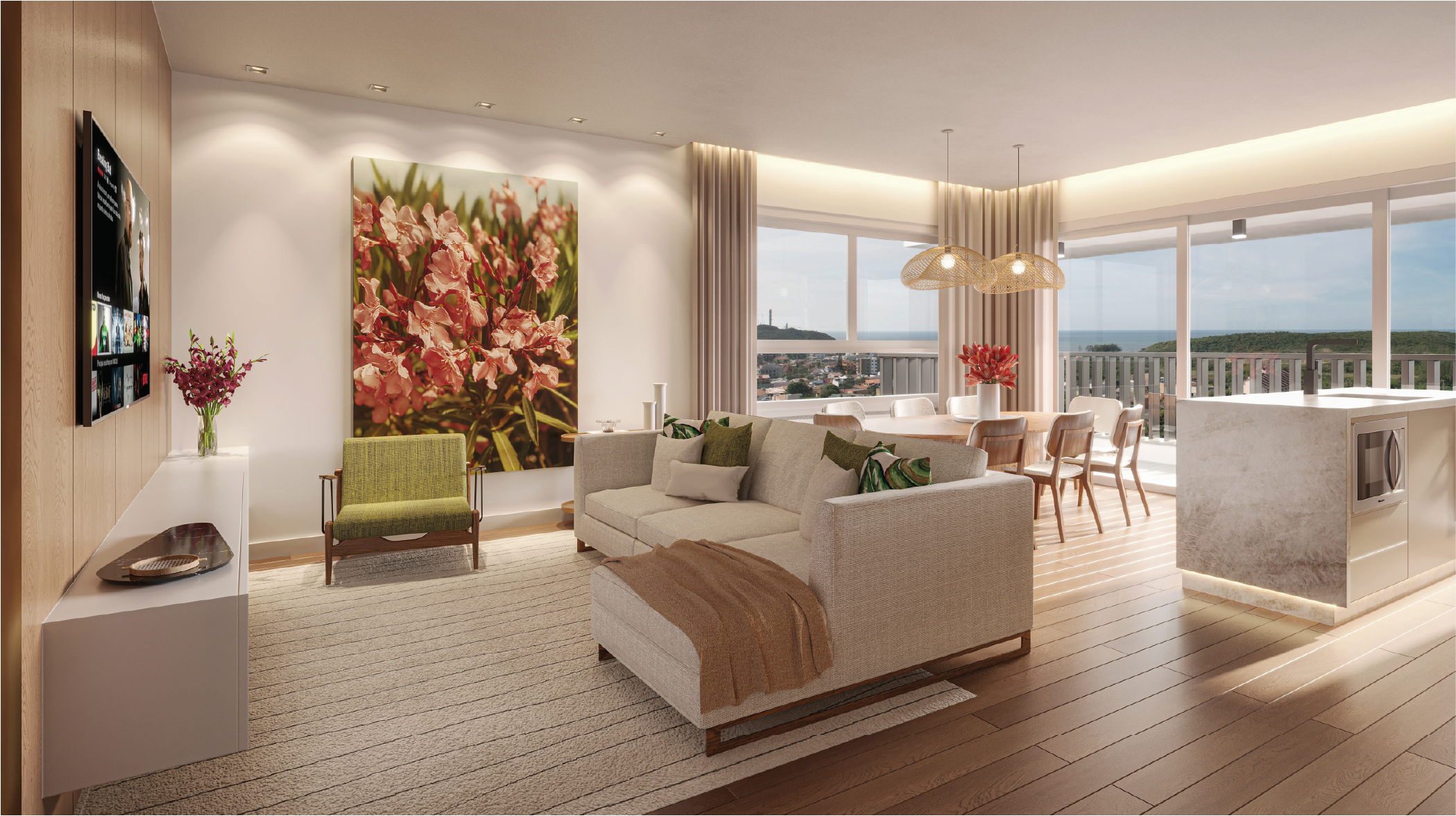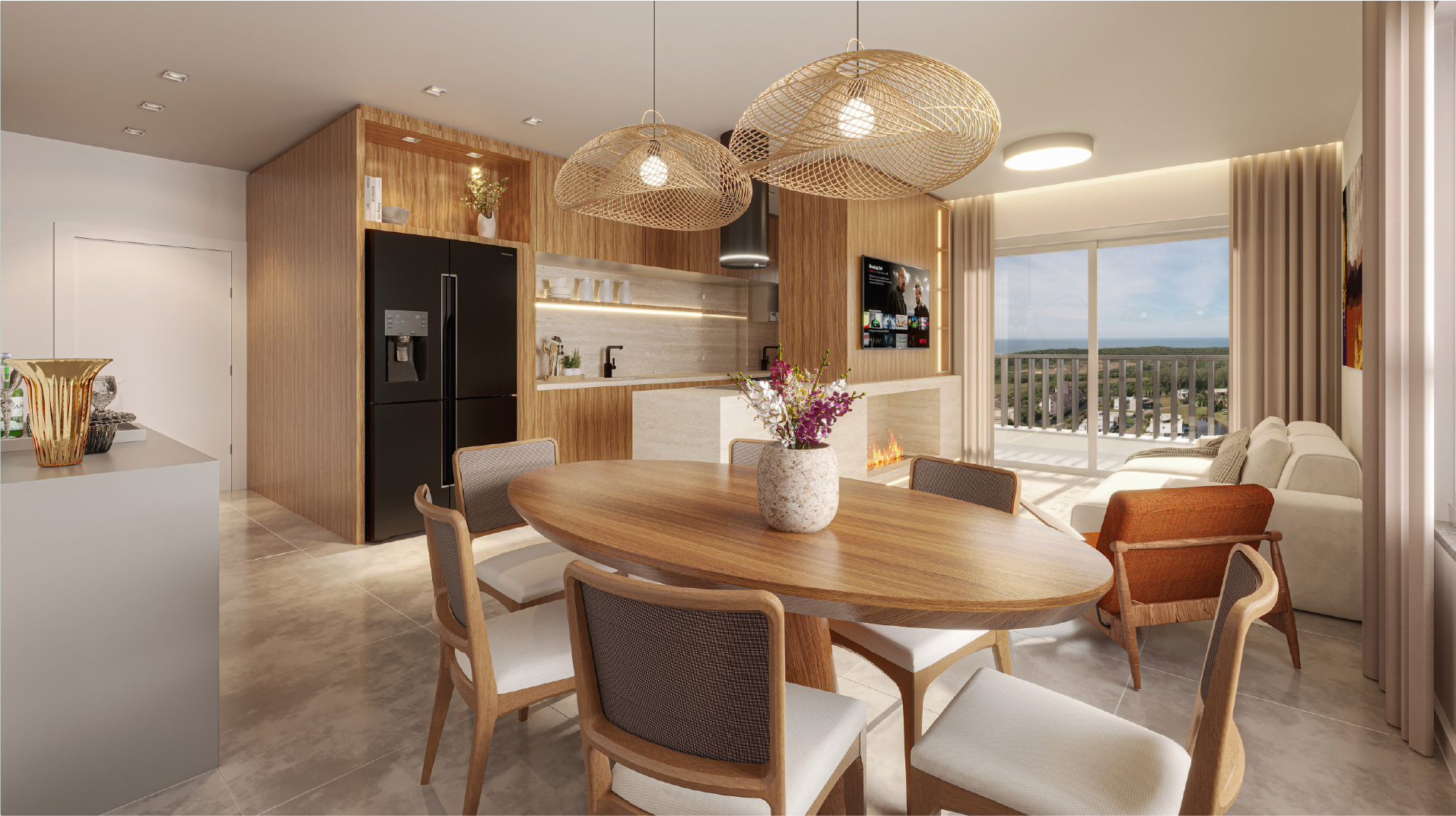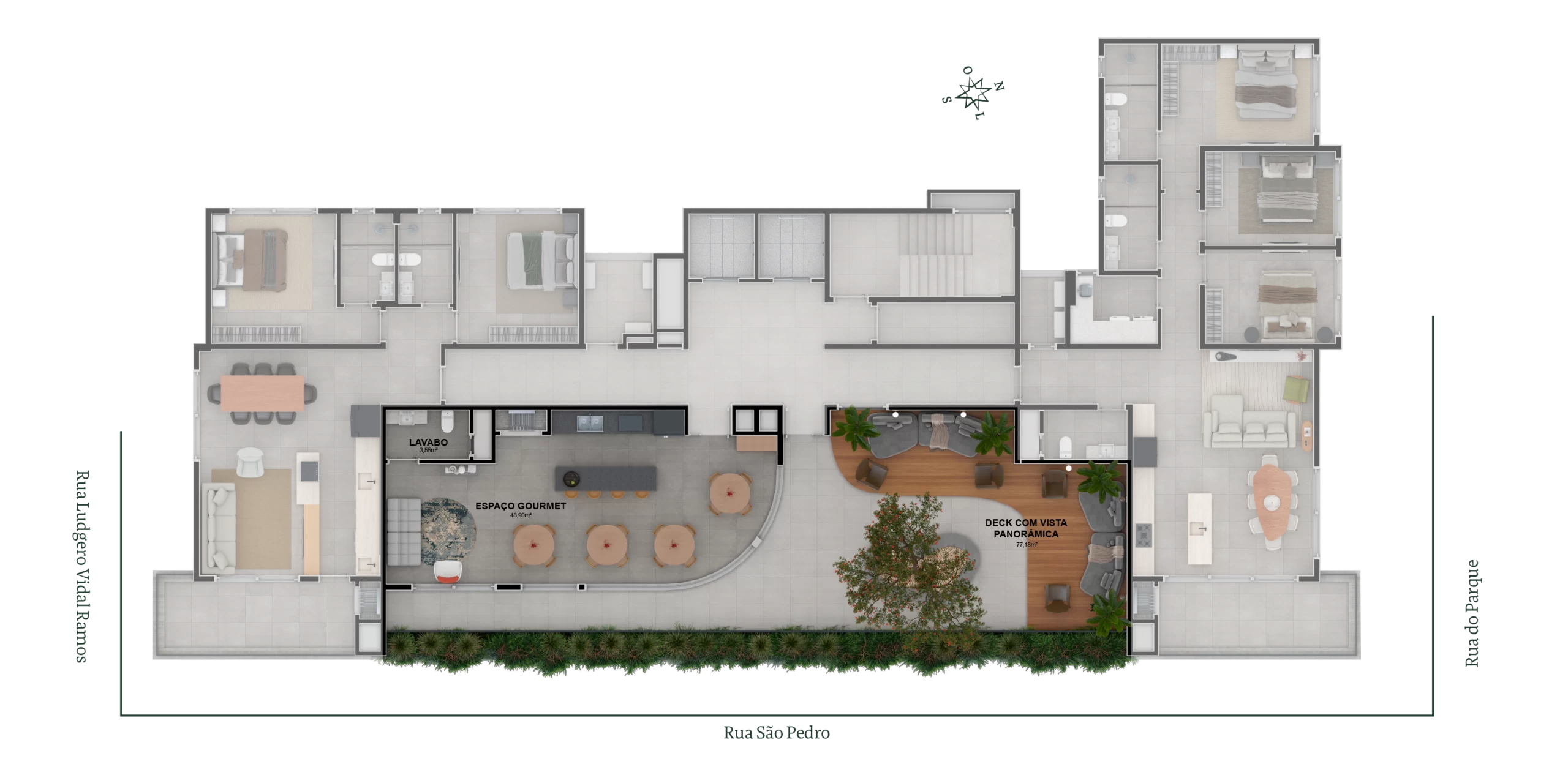 No ponto mais alto, onde a arquitetura encontra a natureza, o DECK COM VISTA PANORÂMICA revela um cenário de tirar o fôlego.